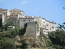 - Murs et portes urbains, datant peut-être du XIIe siècle. L'une des portes a été remodelée au XVIIIe siècle, tandis que d'autres sont endommagées par le passage du temps ou ont disparu ne laissant que des traces[14]. Un supportico mène de la place centrale au centre historique: on y accède par une arche ronde sur les montants de laquelle se trouve l'inscription VB, qui indiquerait Universitas Bumbae[14].