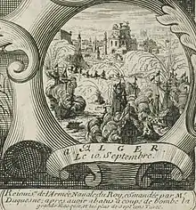 Le bombardement d’Alger de 1682 est une opération navale du royaume de France contre la régence d'Alger au cours de la guerre franco-algérienne (1681-1688). Louis XIV confie à Abraham Duquesne la mission de bombarder Alger après que le dey a déclaré la guerre à la France en 1681. Ce bombardement fait partie des multiples opérations menées pendant deux siècles contre la course musulmane en Méditerranée et dans l’Atlantique[8].