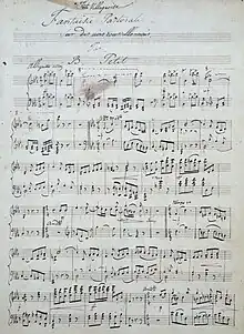 Cette symphonie reprend des airs connus comme « Lou Pardal », «Lous goigs dals ous » ou encore « Mountagnas ragaladas » (orthographe de B. Petit). À noter : 1re représentation à Perpignan, square de la pépinière, musique du 17e régiment d'infanterie de ligne sous la direction de Certon, en décembre 1867. - Manuscrit, Sans date, 90 p., 34 x 26,5 cm. « A Monsieur Justin Durand, symphonie pastorale sur des airs roussillonnais (avec chœur ad libitum) ». Chœur mixte ad libitum avec accompagnement d'un grand orchestre. - Manuscrit, Sans date, [50 p.], 28 x 34,5 cm. Conducteur de la version pour orchestre à cuivres (sans le chœur). - Manuscrit, Sans date, [16 p.], 35,5 x 27 cm. « Fête villageoise. Fantaisie pastorale sur des airs roussillonnais ». Version pour piano (sans le chœur). |