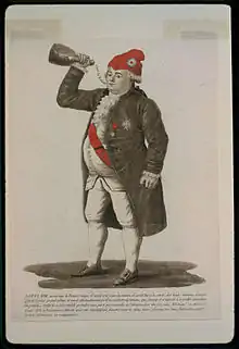 Selon Auguste Dupouy, des soldats suisses du Régiment de Châteauvieux qui s'étaient révoltés à Nancy contre leurs officiers avaient été envoyés au bagne de Brest (affaire de Nancy). Leur grâce ayant été décidée en 1792 par l'Assemblée législative, ils reviennent à Paris coiffés du bonnet rouge des bagnards et sont reçus en triomphe par la population qui adopte ce bonnet pour emblème de la République[4]. Le 20 juin 1792, le peuple de Paris, qui avait investi les Tuileries, força Louis XVI à se couvrir du bonnet rouge, alors déjà identifié comme phrygien.