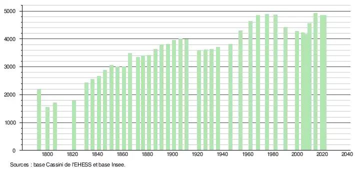4 859 hab. (2021 en diminution de 2,55 % par rapport à 2015)