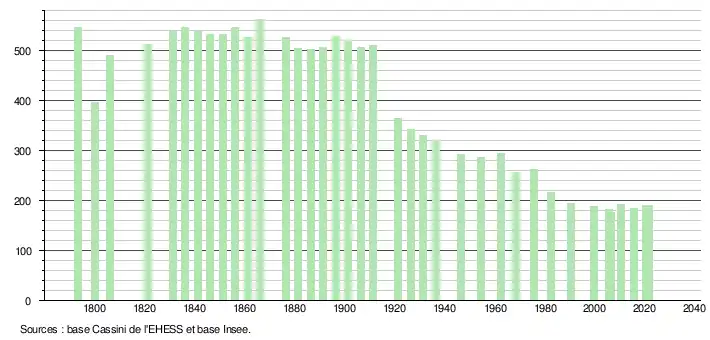 - Fiches Insee - Populations légales de la commune pour les années 2006, 2007, 2008, 2009, 2010, 2011, 2012, 2013, 2014, 2015, 2016, 2017, 2018, 2019, 2020 et 2021.