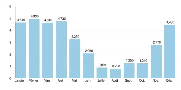 Le module de la rivière à Bonneval est de 2,95 m3/s.