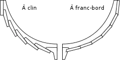 - Bordage à clin : les bordages sont superposés et assemblés avec de chevilles ou des rivets.