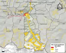 Les mouvements de terrains susceptibles de se produire sur la commune sont soit des chutes de blocs, soit des glissements de terrains, soit des effondrements liés à des cavités souterraines, soit des mouvements liés au retrait-gonflement des argiles. Près de 50 % de la superficie du département est concernée par l'aléa retrait-gonflement des argiles, dont la commune de Bordes-Uchentein[29]. L'inventaire national des cavités souterraines permet par ailleurs de localiser celles situées sur la commune[30].