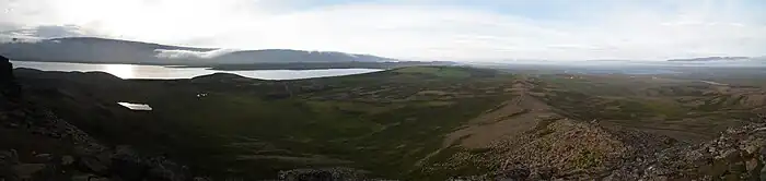 Vue de la partie sud de Borgarvirki et son entrée située à l'est. | ||