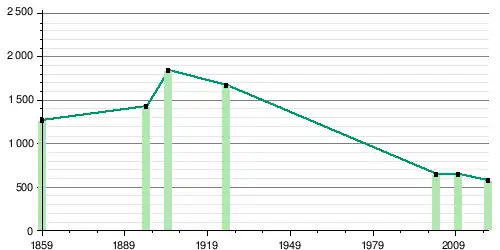Le village a subi l'exode rural pendant le XXe siècle, mais il s'est arrêté au début du XXIe siècle, la population du village s'étant stabilisée. En 2010, le village était peuplé de 646 habitants, dont 296 hommes (45,8 %) et 350 femmes (54,2 %)[3].