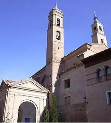 Cette collégiale offre un mélange de styles divers, où le mudéjar domine à l'extérieur et le baroque à l'intérieur, avec aussi du roman (XIIe siècle), du gothique, et du classique français (XIXe siècle). Elle présente deux tours élancées. L'église, à nef simple, comporte une abside polygonale et une chapelle entre ses contreforts. Y sont remarquables le grand retable, l'orgue, et les panneaux gothiques de la sacristie. Le cloître fut construit au XVe siècle.
