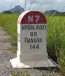 Une borne routière ,ou borne kilométrique, est un élément signalétique placé régulièrement en bordure de route et destiné à identifier la route concernée et à y indiquer les distances, le plus souvent vers les localités voisines.