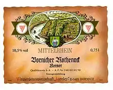 Le fameux rocher Loreley est situé à Bornich (étiquette du vignoble Bornicher Rothenack).