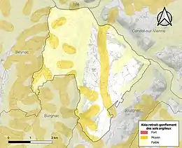 Le retrait-gonflement des sols argileux est susceptible d'engendrer des dommages importants aux bâtiments en cas d’alternance de périodes de sécheresse et de pluie[22]. 27,2 % de la superficie communale est en aléa moyen ou fort (27 % au niveau départemental et 48,5 % au niveau national métropolitain)[Carte 2]. Depuis le , en application de la loi ÉLAN, différentes contraintes s'imposent aux vendeurs, maîtres d'ouvrages ou constructeurs de biens situés dans une zone classée en aléa moyen ou fort[Note 4],[23].