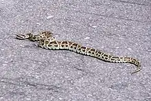 C'est un serpent venimeux qui mesure jusqu'à 2 mètres de long et peut avoir une coloration dorsale variée, cendrée, rose, jaune, marron ou dorée, avec des taches triangulaires marron-foncé.