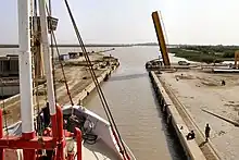 Le Bou El Mogdad au passage de l'écluse du barrage de Diama