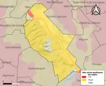 La commune est vulnérable au risque de mouvements de terrains constitué principalement du retrait-gonflement des sols argileux[17]. Cet aléa est susceptible d'engendrer des dommages importants aux bâtiments en cas d’alternance de périodes de sécheresse et de pluie. 94,4 % de la superficie communale est en aléa moyen ou fort (67,5 % au niveau départemental et 48,5 % au niveau national). Sur les 387 bâtiments dénombrés sur la commune en 2019, 386 sont en aléa moyen ou fort, soit 100 %, à comparer aux 90 % au niveau départemental et 54 % au niveau national. Une cartographie de l'exposition du territoire national au retrait gonflement des sols argileux est disponible sur le site du BRGM[18],[Carte 2].