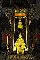 La statue est présentée sur un piédestal en or, sur un autel de 11 m de haut, dans une cage de verre (la photographier est interdit) et sous un parasol doré à neuf étages symbolisant la royauté universelle.