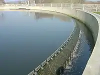 - bassin de décantation secondaire (dit aussi clarificateur) : l'eau épurée est évacuée par « surverse » dans le milieu naturel (sauf traitement tertiaire).