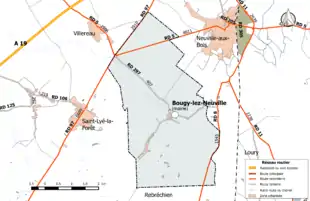 En 2016, Bougy-lez-Neuville est desservie par la ligne régulière no 20 du réseau d'autocars interurbains Ulys[43] qui relie Pithiviers - Chilleurs-aux-Bois - Neuville-aux-Bois - Saint-Lyé-la-Forêt - Orléans[44]. Des correspondances SNCF sont assurées à la gare d'Orléans et TAO et Transbeauce à la Gare routière d'Orléans. À compter du , la compétence des services de transports routiers interurbains, réguliers et à la demande est transférée des départements aux régions, et donc localement du département du Loiret à la région Centre-Val de Loire, consécutivement à la loi NOTRe du 7 août 2015[45]. Dans ce cadre le Réseau de mobilité interurbaine « Rémi » remplace chacun des réseaux départementaux et en particulier le réseau Ulys dans le Loiret et entre en service à compter de la rentrée scolaire du [46].