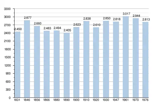 Les chiffres des années 1831 à 1970 tiennent compte des chiffres des anciennes communes fusionnées.