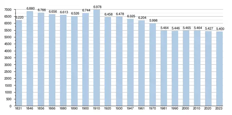 - Source: DGS , de 1831 à 1981=recensements population; à partir de 1990 = nombre d'habitants chaque 1 janvier