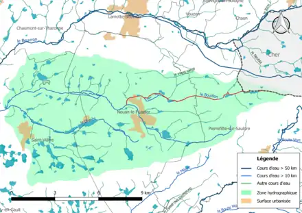 Le Bouillon traverse 3 communes, soit de l'amont vers l'aval : Brinon-sur-Sauldre (Cher), Pierrefitte-sur-Sauldre (Loir-et-Cher), Nouan-le-Fuzelier (Loir-et-Cher).