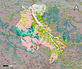 La superficie cadastrale de la commune publiée par l'Insee, qui sert de référence dans toutes les statistiques, est de 56,0 km2[10],[Note 2].