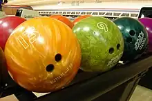 Il existe deux sortes de boules : boule dure et boule réactive. Les masses sont indiquées en livres sur les boules. Leur diamètre est compris entre 8,5 et 8,595 pouces (21,59 et 21,83 cm)[1].