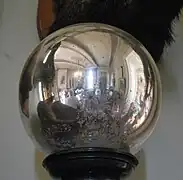 - Une autre superstition concernant les watch balls en forme de miroir sphérique (voir également l'article de M.V. Berry[6] pour une analyse mathématique.) suspendue dans une pièce de la maison, est qu'elles empêchent une sorcière d'entrer dans la pièce, car la totalité de la pièce était visible dans le miroir et une sorcière ne pouvait pas supporter de voir son reflet dans un miroir[5].