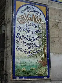 L'immeuble a été construit à la même période que le canal, c'est-à-dire vers les années 1826. L'ancienne maison Bouly, négociant-grossiste en carrelage, sanitaire et revêtements de cuisines et de salles de bain s'y installe en 1867 et agrémente l'entrée de ses locaux par de la publicité sous forme de panneaux de céramique de couleurs vives. La façade sur le boulevard comprend des arcades pleines jusqu'au premier étage, incorporant les fenêtres de l'entresol. La porte principale, située sous l'arcade centrale est encadrée de chaque côté par une niche contenant une statue de style romain.
