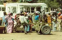 Les habitants du département de Boundiali, comme tous ceux de l'AOF et de l'AEF, ont été soumis au travail forcé, souvent dénommé « prestation »[24] jusqu'à sa suppression en 1946 grâce à la « loi Houphouët-Boigny » qui satisfaisait les revendications du Syndicat agricole africain[Note 14] : était astreinte à 12 jours de travail annuel toute personne de sexe masculin, de plus de 15 ans et de moins de 65 ans, et n'occupant pas de poste administratif ou militaire. Cette pratique du travail forcé en Afrique, qui a fait de nombreuses victimes dans les empires coloniaux français et belge, avait été dénoncée en Europe par l'écrivain André Gide en 1927 dans son livre, Voyage au Congo, et par le reporter Albert Londres dans son ouvrage paru en 1928, Terre d'ébène. De surcroît, la capitation[Note 15],[25], impôt lié à l'existence de la personne, donc indépendant de ses revenus, et aboli en France par la Révolution de 1789, avait été établie en 1901 et elle devait théoriquement être perçue en argent à partir de 1903. Elle devait être payée par tous les habitants des deux sexes ayant atteint l'âge de 8 ans. La capitation était souvent remplacée dans les faits par des journées de travail supplémentaire, faute de liquidité monétaire, par les redevables, pour s'en acquitter. On note, par exemple, un télégramme reçu en 1935 par le commandant du cercle de Korhogo de la part d'un planteur européen lui enjoignant de « recruter 100 manœuvres pour Boundiali, et de faire en sorte que les hommes soient prêts pour le 5 avril »[26]. Le principe officiel de travail d'intérêt public avait dans les faits été remplacé par la mise à disposition par l'administration de main d'œuvre gratuite au bénéfice des fonctionnaires de l'administration et des colons européens, les planteurs africains n'étant nullement concernés. C'est d'ailleurs, pour l'essentiel, dans le cadre de ce travail forcé que s'est développée l'immigration mossi, issue de la Haute-Volta, actuellement Burkina Faso, dans tout le nord de la Côte d'Ivoire[27]. Avec le déclenchement de la Seconde Guerre mondiale, outre l'impôt de capitation, les populations seront astreintes à verser des « dons pour la défense de la Côte d'Ivoire et de la France ».