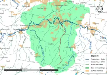 | Sources : SANDRE:« Fiche cours d'eau (K7526000) », Géoportail | |