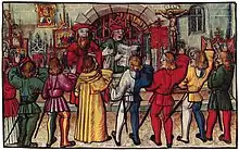 La notion de bourgeois (en allemand Bürger) apparaît au IXe siècle, où elle désigne un habitant d'une localité liée à un château fort[6] ; dès le XIe siècle, le terme de bourgeois s'étend aux habitants d'une ville[7],[6]. La qualité de bourgeois n'est octroyée qu'aux habitants propriétaires d'une parcelle intra-muros[6]. Entre le XIe et XIIIe siècle, les communes bourgeoises citadines (des villes) influencent beaucoup la vie économique en Suisse, mais aussi la manière dont se fait la politique[8], jusqu'au point que certaines villes deviennent des villes-État[8], comme Berne. La condition de propriété est abolie au cours du XIIIe siècle[6]. Toutefois la condition de propriété est maintenue pour les bourgeois dits forains (Ausbürger ou Pfahlbürger, en italien borghesi esterni, litt. bourgeois externes)[N 1],[6]. À la même époque, la bourgeoisie devient un « lien personnel de fidélité envers le seigneur de la ville et envers les autres bourgeois », ce lien pouvait être même octroyé à des personnalités ou des corporations extérieures à la ville[6].