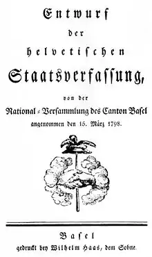 La Révolution française, exportée en Suisse sous la forme de la République helvétique, constitue un grand renversement de l'ordre communal établi jusque là[11],[13]. Une constitution est imposée à la Suisse, où les communes (en général, sans distinction entre commune politique et commune bourgeoise) sont mentionnées à ses articles 15 et 16[14],[15].