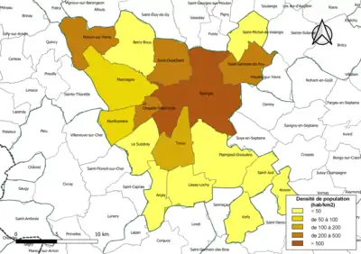 | La Chapelle-Saint-Ursin | 18050 | Chapellois | 7,83 | 3 692 (2021) | 472 |