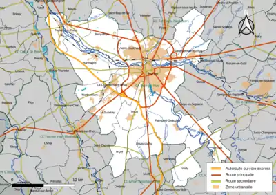 Située au centre du département du Cher, la communauté d'agglomération Bourges Plus regroupe 17 communes et présente une superficie de 417,3 km2[3].