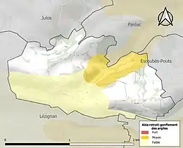 Le retrait-gonflement des sols argileux est susceptible d'engendrer des dommages importants aux bâtiments en cas d’alternance de périodes de sécheresse et de pluie. 13,2 % de la superficie communale est en aléa moyen ou fort (44,5 % au niveau départemental et 48,5 % au niveau national). Sur les 41 bâtiments dénombrés sur la commune en 2019, 0 sont en aléa moyen ou fort, soit 0 %, à comparer aux 75 % au niveau départemental et 54 % au niveau national. Une cartographie de l'exposition du territoire national au retrait gonflement des sols argileux est disponible sur le site du BRGM[31],[Carte 2].