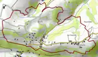 La superficie de la commune est de 126 hectares ; son altitude varie de 429 à 582 mètres[4].