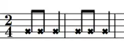 On danse généralement les bourrées à deux temps en posant les pieds sur le rythme suivant :