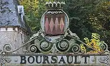 Les armoiries (de gueules aux quatre fusées pommetées d'argent accolées en fasce) que l'on trouve à l'entrée du château correspondent aux armes du comte Louis de Chevigné[28], propriétaire du château au XIXe siècle.