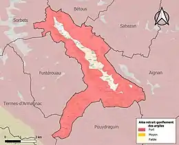 Le retrait-gonflement des sols argileux est susceptible d'engendrer des dommages importants aux bâtiments en cas d’alternance de périodes de sécheresse et de pluie. 87,8 % de la superficie communale est en aléa moyen ou fort (94,5 % au niveau départemental et 48,5 % au niveau national). Sur les 104 bâtiments dénombrés sur la commune en 2019, 54 sont en aléa moyen ou fort, soit 52 %, à comparer aux 93 % au niveau départemental et 54 % au niveau national. Une cartographie de l'exposition du territoire national au retrait gonflement des sols argileux est disponible sur le site du BRGM[20],[Carte 3].
