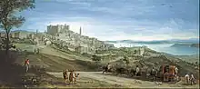 - Les ruines d'Aquae Apollinaris formaient un complexe thermal renommé durant l'antiquité romaine[6] ; le site est mentionné sur la table de Peutinger et sur l'Itinéraire d'Antonin. Selon Desjardins, les monnaies trouvées couvrent une suite ininterrompue depuis 2 500 ans av. J.C. jusqu'au IVe siècle[7]. On y a aussi trouvé de nombreux ex-votos et stipis, dont des vases élégants en argent, bronze ou cuivre ; et trois gobelets célèbres dans le monde archéologique, en forme de bornes milliaires, sur lesquels sont gravés toutes les stations de la route suivie par les curistes de Cadix à Rome. Ces gobelets sont, avec l'itinéraire d'Antonin, les seules sources d'information sur les routes d'Espagne[8],[9].