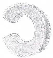 Les bracelets coupants à lame unique ont généralement la forme d'un disque fin rond ou légèrement ovale (illustrations A-B)[2]. Il existe également des variantes dans lesquelles la lame dépasse comme une langue (illustration C)[5]. Son diamètre est d'environ 20-25 centimètres[6]. Au milieu se trouve une ouverture du diamètre d'un poignet ou d'un avant-bras. La lame est ajourée afin de pouvoir enfiler le couteau sur le bras. L'intérieur est rembourré de cuir pour protéger le bras. Le bord extérieur est aiguisé et, lorsque l'anneau est porté au bras, il est recouvert d'une bande de cuir qui s'emboîte sur le tranchant. Avant le combat, les bandes de cuir protectrices pouvaient être rapidement retirées. Ces couteaux de poignet sont typiques surtout pour les Turkanas, où ils sont appelés ararait[2] ou abarait[7]. Ils ont également été utilisés par plusieurs autres ethnies comme les Dassanetchs, Nyangatoms, Boya, Lokoyas, Baris, Murles, Acholis, Karamojongs, Toposas, Didingas et Pokots[2].