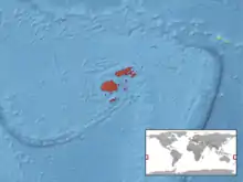 Cette espèce est originellement endémique des Fidji[1]. Elle se rencontre sur Ovalau, sur Gau, sur Kadavu et sur Viti Levu.