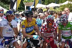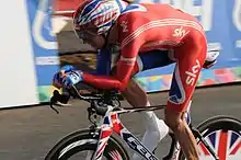 Sir Bradley Wiggins est un cycliste britannique né le à Gand (Belgique). Professionnel entre 2002 et 2016, il est spécialiste de la poursuite, a été champion olympique de poursuite individuelle en 2004 et 2008 et de poursuite par équipes en 2008 et 2016, et champion du monde de poursuite individuelle en 2003, 2007 et 2008, par équipes en 2007 et 2008, et de l'américaine en 2008. Il se consacre davantage au cyclisme sur route à partir de 2009. Troisième du Tour de France cette année-là[n 8],[1], il a remporté le Critérium du Dauphiné en 2011 et 2012, Paris-Nice en 2012, le Tour de Romandie en 2012 et s'est classé deuxième du Tour d'Espagne 2011. Le 22 juillet 2012, il devient le premier Britannique vainqueur d'un Tour de France, devant son coéquipier et compatriote Christopher Froome. Il devient champion olympique du contre-la-montre un mois plus tard à Londres et champion du monde de la spécialité en 2014. Entre juin 2015 et avril 2019, il est détenteur du record de l'heure, en ayant parcouru 54,526 km. Son père est le coureur cycliste Gary Wiggins. Il annonce sa retraite sportive le 28 décembre 2016. Il essaie par la suite sans succès une reconversion en aviron.