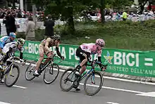 En mai, au Tour d'Italie, Bradley Wiggins est le leader de l'équipe Sky, dont c'est le premier grand tour. Il remporte la première étape contre-la-montre à Amsterdam, aux Pays-Bas. Retardé par une chute le lendemain, il perd le maillot rose[61]. Lors de la troisième étape, à nouveau victime d'une chute, il perd près de 4 minutes[62],[63]. Deux jours plus tard, l'équipe Sky prend la deuxième place du contre-la-montre par équipes, battue de treize secondes par l'équipe Liquigas-Doimo. Lors de la onzième étape, Wiggins fait partie d'un groupe d'échappés d'une quarantaine de coureurs qui arrivent à L'Aquila avec près de 13 minutes d'avance sur le peloton des favoris. Cette étape permet à Wiggins de se replacer parmi les prétendants au classement général : de 24e avec onze minutes de retard sur Alexandre Vinokourov, il passe à la dixième place, à huit minutes de Richie Porte[64]. Il perd cependant toute chance de bien figurer au classement général lors de la quinzième étape, en arrivant avec plus de 25 minutes de retard au Monte Zoncolan[65]. Il prend la septième place de la dernière étape, disputée contre-la-montre, et termine ce Giro à la 40e place.
