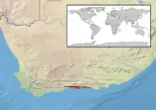 Cette espèce est endémique du Cap-Occidental en Afrique du Sud[1].