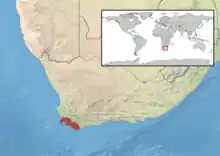 Cette espèce se rencontre en Afrique du Sud, dans le sud du Mozambique et dans le sud de la Namibie[1].