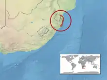 Cette espèce est endémique du KwaZulu-Natal en Afrique du Sud[1].