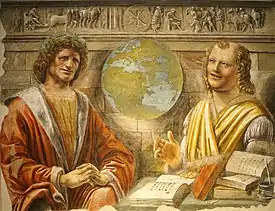 Héraclite et Démocrite dissertent sur le monde, pinacothèque de Brera, Milan. (où il serait possible de voir sous les traits d’Héraclite et Démocrite, Leonard de Vinci et Bramante lui-même...?)