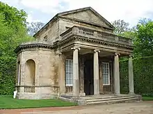 Construite à l'origine comme temple palladien, elle est ensuite utilisée comme orangerie, pavillon d'été, puis consacrée comme chapelle vers 1906.