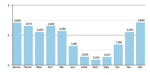 Le Bramont a de très fortes variations de débit : de 0,094 m3/s à 93 m3/s.
